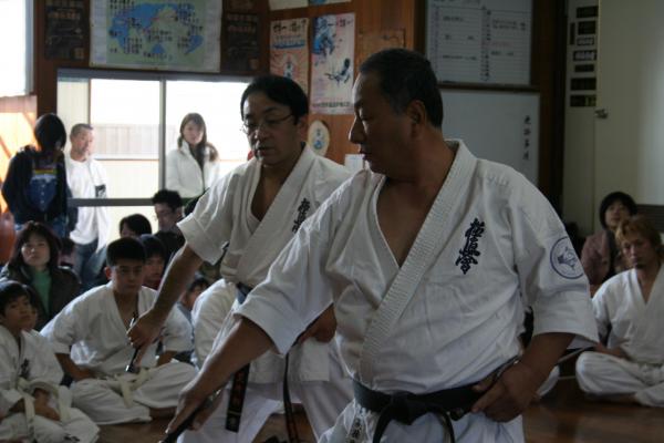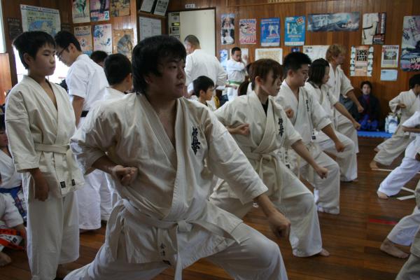 今回は、遠く神奈川県から荒井勉先生が弐段昇段審査の受審のため来県され、征遠鎮、観空、サイの型に懸命に取り組んでいました。