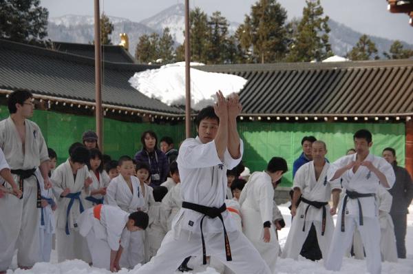 1月8日に勝山越前大仏殿前にて恒例の寒稽古が行われました。 来月2月には一般部対象の一条滝寒稽古が予定されています。