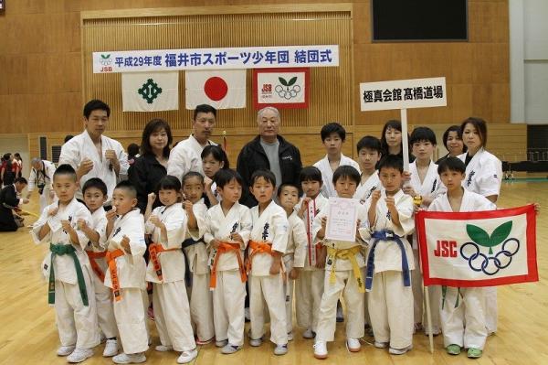 5月13日土曜日に、福井市スポーツ少年団の結団式が福井市体育館にて行われました。 高橋道場少年部も、正式加盟道場として、結団式に参加しました。 堂堂行進に、加盟の証のリボン授与式受けました。