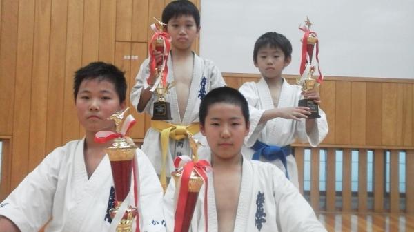 第一回ジュニア登竜門空手道選手権大会にて高橋道場より参加の福井航輝君、高橋奏多君が優勝。堀岡涼汰君 藤田柊弥君が準優勝に輝きました!!皆さん闘志溢れる闘い確実に実力アップしています!!