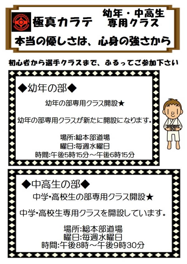 幼年の部専用クラスが新たに開設になります。
